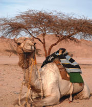 بیر سیچان چولده بیر دوه یه راست گلدی، دیشی ایله دوه نین افسارین چکمگه باشلادی.